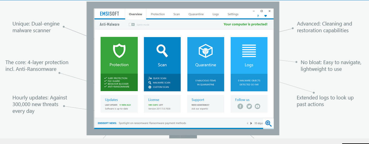 "Emsisoft is HANDS down the BEST protection on the market! It is the ONLY protection we use personally!"