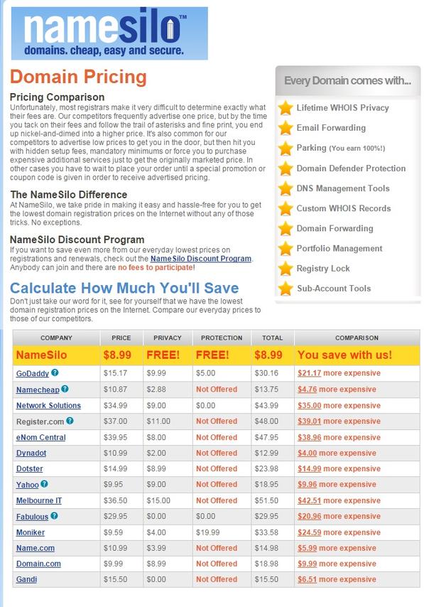 $8.99 per year. No Coupon Necessary. Free Whois Privacy, Free Domain Protection! FOR LIFE!!!